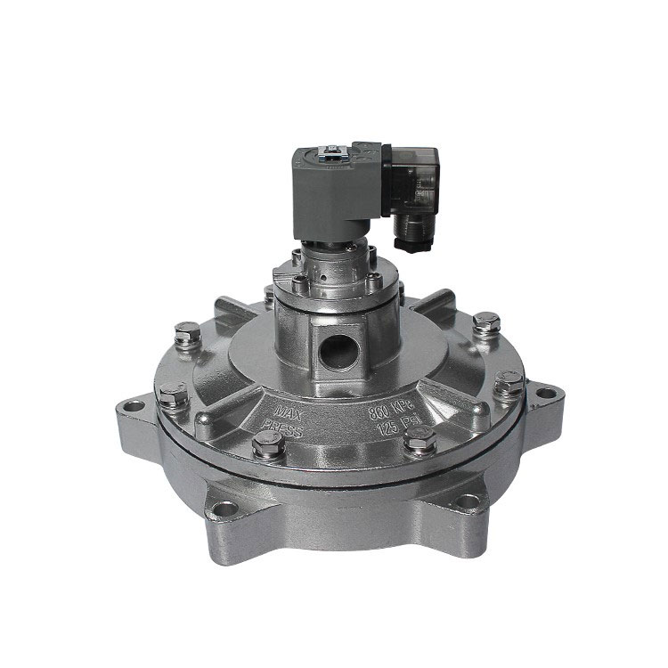 విద్యుదయస్కాంత పైలట్ హెడ్, డయాఫ్రాగమ్ అసెంబ్లీ (డయాఫ్రాగమ్, ప్రెజర్ స్ప్రింగ్, సీల్) మరియు వాల్వ్ బాడీని కలిగి ఉంటుంది. ఎయిర్ రిజర్వాయర్లో మునిగి వ్యవస్థాపించబడి, ఇది ఫ్లాంజ్ ద్వారా రిజర్వాయర్కు కలుపుతుంది. అవుట్లెట్ పోర్ట్ రిజర్వాయర్ లోపల వాల్వ్ బాడీలో కేంద్రంగా ఉంది, ఆపరేషన్ కోసం బ్లో చాంబర్లోకి ప్రవేశించడానికి గోడ-చొచ్చుకుపోయే పరికరం వంటి భాగాల ద్వారా విస్తరించి ఉంటుంది. ఈ వాల్వ్ రకం ఆప్టిమైజ్ చేయబడిన ఫ్లో ఛానల్ డిజైన్ను కలిగి ఉంటుంది, ఇది గ్యాస్ ప్రవాహ నిరోధకతను సమర్థవంతంగా తగ్గిస్తుంది, తక్కువ పీడన పరిస్థితుల్లో కూడా స్థిరమైన ఆపరేషన్ను నిర్ధారిస్తుంది. ఈ డిజైన్ శక్తి వినియోగాన్ని తగ్గిస్తుంది మరియు డయాఫ్రాగమ్ జీవితకాలం పొడిగిస్తుంది.